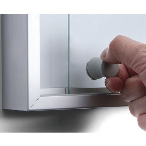 Vitrina de interior com fundo magnético, SLIM. Fundo em metal de boa qualidade, permite a utilização de ímanes e marcadores. Portas corrediças em vidro de segurança. Design de perfil fino e elegante. Fabricado na UE