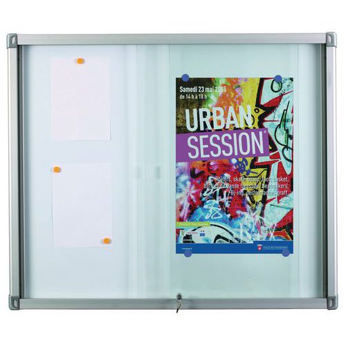 Vitrina de interior Leaf – fundo em alumínio – porta de segurança em vidro, Cap. (n.º de folhas A4): 24